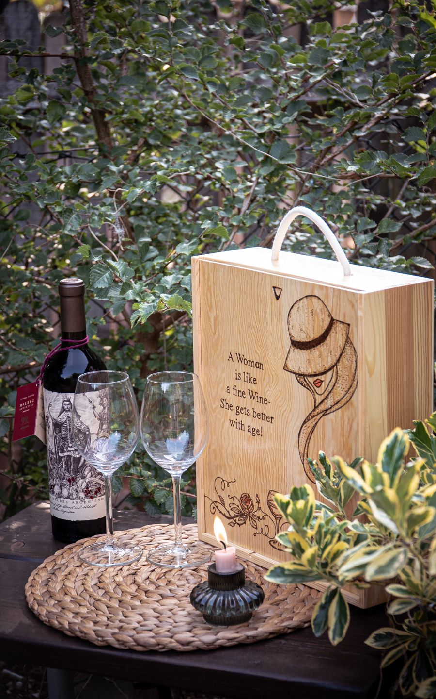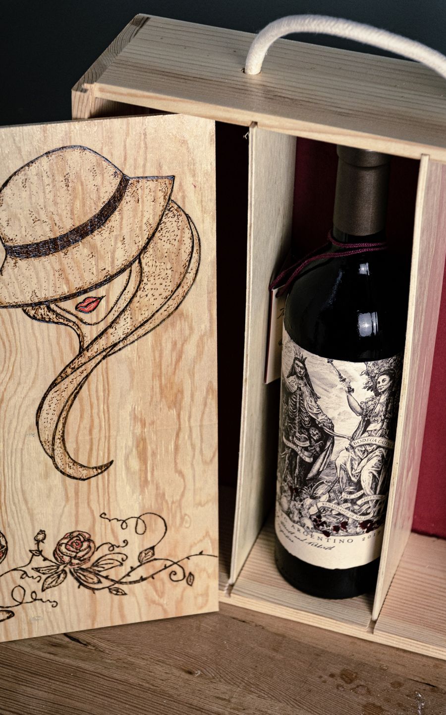 3 Bottle Hand Burned Pre-Made Wine Box