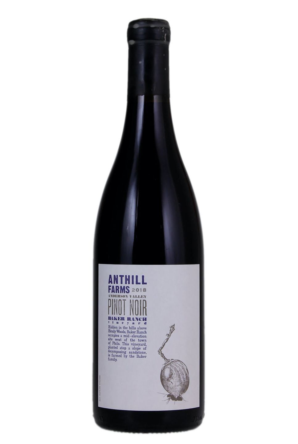 Nestled in the heart of California, Anthill Farms Winery presents its remarkable Baker Ranch Vineyard Pinot Noir. This exquisite wine holds a splendid ruby hue, offering a rich nose of ripe cherries, forest floor, and delicate spices. On the palate, it's a rhapsody of luscious raspberry, subtle clove and balmy oak, striking a perfect balance between acidity and tannins. Unfurling in sophisticated complexity, this Pinot Noir is an ode to finesse and elegance, with a lingering, mellow finish. It's a true representation of Anthill Farms' dedication to organic farming and meticulous winemaking. Enjoy this impressive Californian gem.