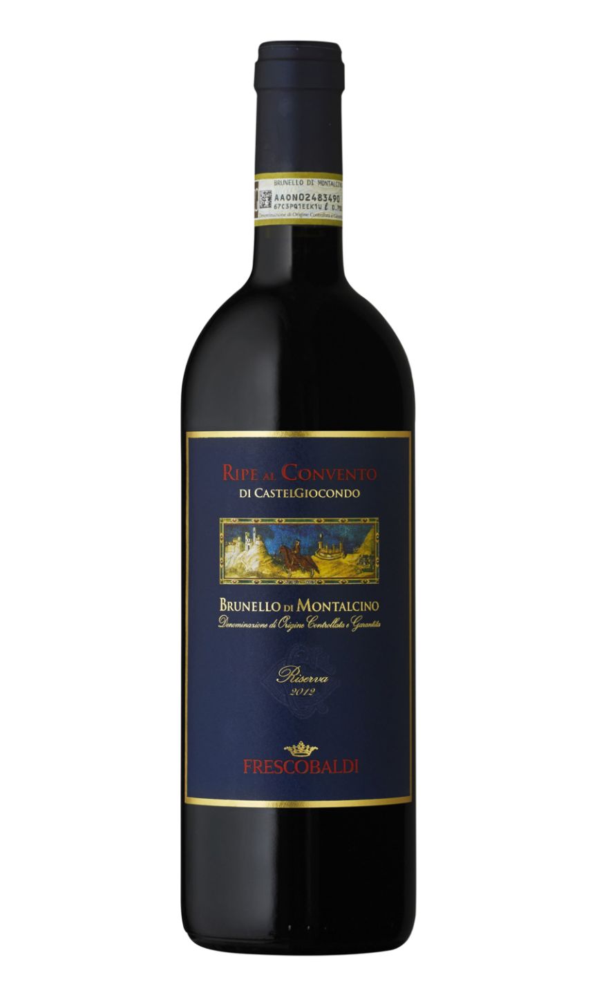 Frescobaldi Ripe al Convento di Castelgiocondo Brunello di Montalcino Riserva DOCG is an exquisite wine from the Italian region of Tuscany. This rich, full-bodied red wine boasts an impressive depth, presenting an aromatic bouquet of ripe cherries, plum and hints of spice. On the palate, it offers complex layers of dark fruit, supported by well-rounded tannins and robust acidity, leading to a lingering, sophisticated finish. With its superb structure, it pairs beautifully with hearty meats and mature cheese. Aged for an extended period, it evolves gracefully, promising an enchanting drinking experience for any serious wine connoisseur.