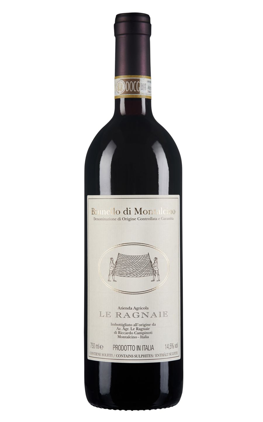 Le Ragnaie Brunello di Montalcino DOCG is a top-tier Italian wine, hailing from Tuscany. Its rich ruby hue is welcomingly inviting while the nose is bountiful with earthy aromas and dark red fruit notes. On the palate, this masterpiece reveals a decadent tapestry of sumptuous cherries, ripe plums, and nuanced spice, all woven through well-structured tannins. Time spent in oak barrels imparts an assertive yet balanced oak flavour that lingers beautifully on the finish. Elegant and complex, this Brunello showcases the exquisite craftsmanship and terroir-specific character that has earned it international acclaim.