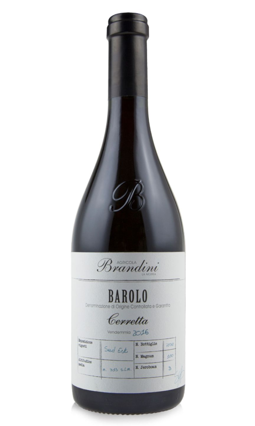 Agricola Brandini Barolo Cerretta wine is a highly esteemed Italian red oozing richness and elegance. Produced in the renowned Barolo region, it boasts a vivid garnet hue and powerful aromas of ripened red fruits, subtle spice and earthy undertones. The palate unveils flavours of cherries, plum, and a hint of tobacco, carried on smooth, velvety tannins. Its robust structure is beautifully balanced with a bright acidity, making it an impeccable accompaniment to robust meat dishes. A wine of great longevity, it gracefully evolves in the bottle, promising an exquisite drinking experience after years of cellaring.