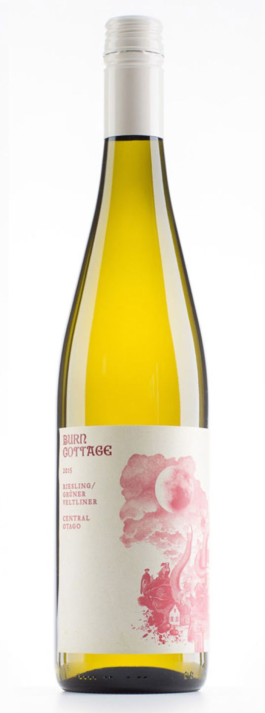 Burn Cottage Central Otago Riesling/Grüner Veltliner wine hails from New Zealand. This subtly captivating wine offers exotic aromas of white peach, ripe pear, and soft lime, framed by an alluring hint of wild herbs. On the palate, its lively acidity melds seamlessly with a creamy richness, courtesy of minimal intervention winemaking. Its profound mineral complexity is a testament to the vineyard's rocky soils, while the finish is long and gratifying. Delicate yet assertive, this blend is perfect for those seeking an edgy but elegant expression of the Central Otago terroir.