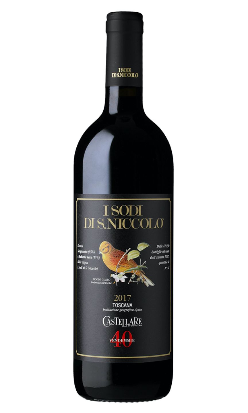 Castellare di Castellina's I Sodi di S. Niccolò wine is a captivating Tuscan blend, predominantly crafted from Sangioveto with a touch of Malvasia Nera. This wine boasts an opulent ruby hue that hints at its complex character. It reveals enticing aromas of dark fruit, underpinned by delicate smoky and spicy notes drawn from maturation in French oak barrels. On the palate, I Sodi di S. Niccolò impresses with its elegant tannic structure, harmonious balance and persistent finish. The exceptional refinement of this wine makes it a finely crafted celebration of Tuscan winemaking tradition.