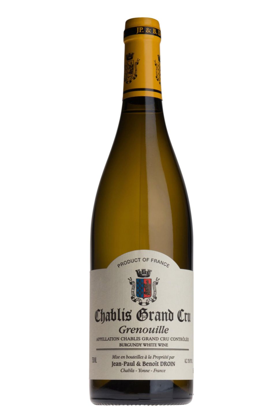 Jean-Paul & Benoit Droin Chablis Grand Cru Grenouilles presents an exquisite testament to French winemaking. This golden hued wine effuses irresistible aromas of white flowers and lemon zest, accentuated by a mineral undertone. Every sip unveils flavours of ripe orchard fruit, lending a lush depth to its firm, steely backbone. Crafted in Chablis' celebrated Grenouilles vineyard, the Droin's meticulous viticulture and traditional vinification methods shine distinctively, offering an elegant complexity. A wine of superior quality and refined acidity, it serves as a perfect partner to seafood, and is a delightful, mature addition to any wine connoisseur's collection.