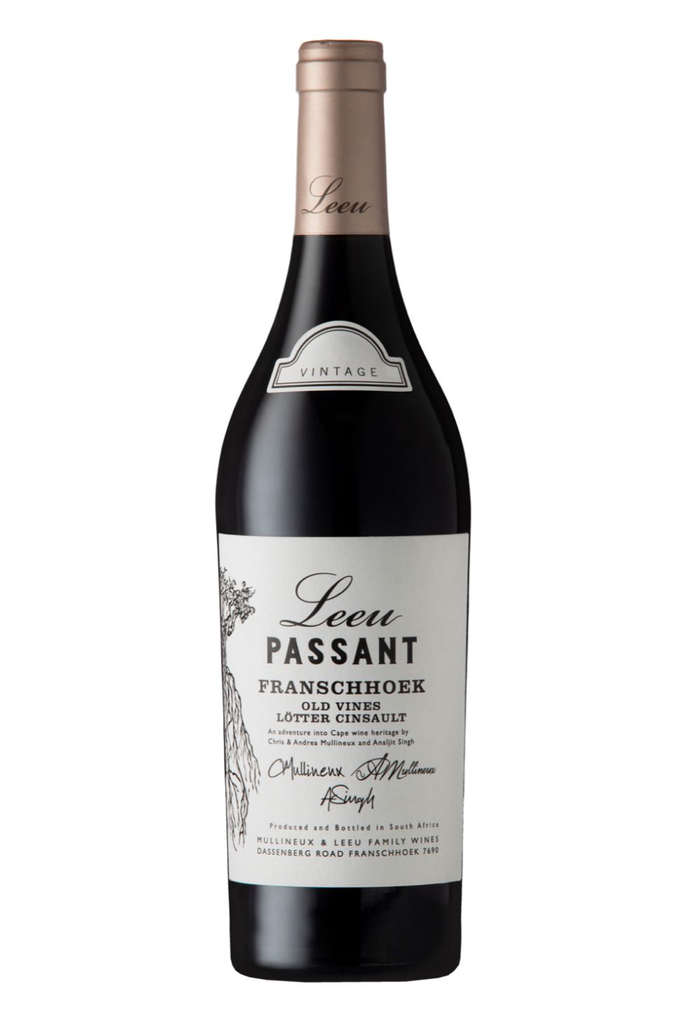 Leeu Passant Old Vines 'Lötter' Franschhoek Cinsault is a sophisticated wine hailing from the well-renowned South African vineyards. It exudes a delicate, clear ruby colour, revealing its refined, mature nature. On the nose, it offers a profusion of vivid red fruit notes, overlayed with hints of spice and well-balanced earthiness. On the palate, this wine possesses a remarkably smooth, medium-bodied taste with soft tannin, harmoniously blending subtlety and depth. Its long finish imbued with subliminal vanilla undernotes symbolises the impressive ageing potential of this Cinsault. A splendid complement to a substantial variety of dishes, especially rich meats.