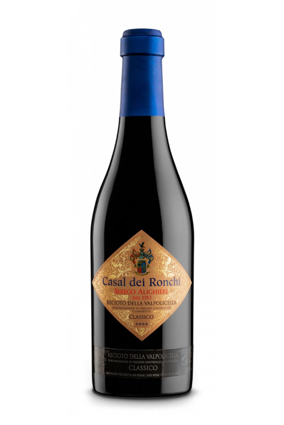 A noble, traditional, sweet dessert red wine from the Valpolicella region, this Recioto comes from the ancient Casal dei Ronchi vineyard on the Possessioni Serego Alighieri estate. Made from the classic blend of Corvina, Rondinella and Molinara grapes, laid out for the winter to rest on bamboo racks in drying lofts during the Appassimento process. On the nose intense aromas of cherries preserved in spirit, and walnuts. On the palate sweet, super-ripe cherries, hints of plum jam with spices and elegant tannins.