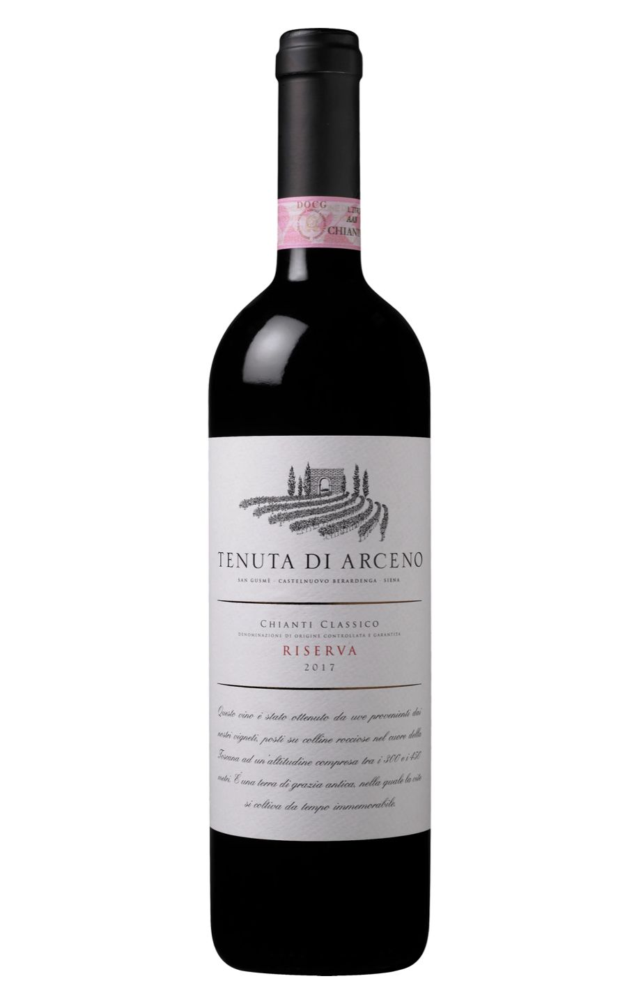 Crafted in the heart of Italy, Tenuta di Arceno Chianti Classico Riserva wine is an exceptional embodiment of Tuscan viticulture. With a stunning ruby red hue, the wine exudes delightful aromas of ripe cherries, vanilla and rose petals, harmonised with an undercurrent of oak. On the palate, it reveals a richly layered medley of red fruits, encased in velvety tannins, leading to a remarkably long finish. Aged in French oak barrels, this Chianti Classico seals a seamless blend of tradition and innovation, making it a true connoisseur's choice. Drink it today or lay it down, its versatility is boundless.