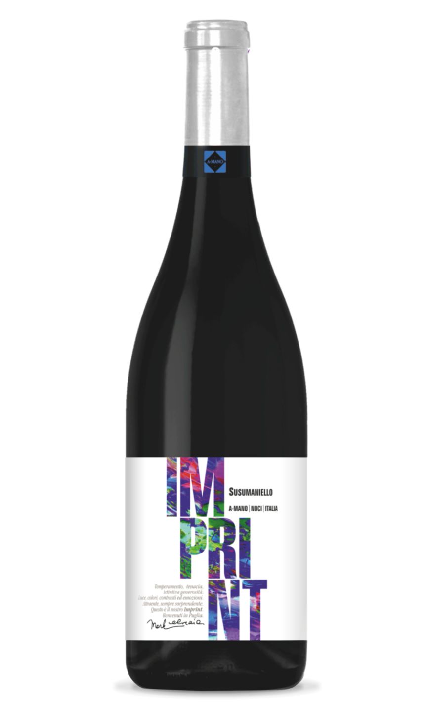 A Mano Imprint Susumaniello wine is an elegant, full-bodied red wine from Puglia, Italy. It possesses an appealing ruby-red hue and delightful fruity aromas of black cherry and raspberry. The palate reveals depth of characters, with firm tannins, generous notes of ripe dark fruits, subtle spices, and a pleasing hint of oak. It's characterized by a well-structured profile, mundano acidity and a lingering, complex finish. This Susumaniello wine is an excellent companion to red meat, mature cheeses, and robust pasta dishes. Its elegance and balance make every sip an enjoyable Italian wine experience.