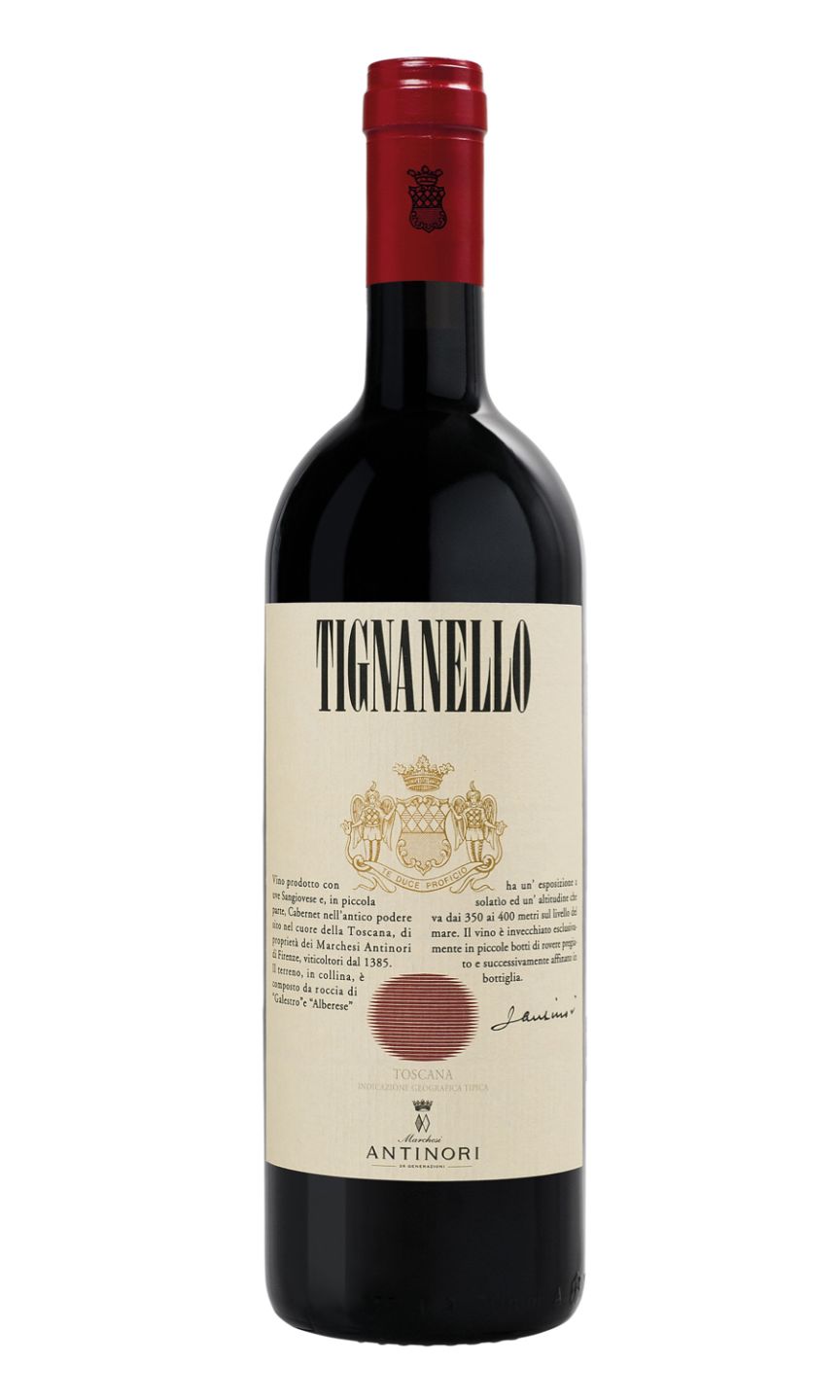 The Antinori Tenuta Tignanello is a superlative Tuscan wine, enveloping the senses with a bouquet of intense cherry and blackberry, underpinned by subtle hints of vanilla and cinnamon. Expertly fashioned from a fusion of Sangiovese, Cabernet Sauvignon, and Cabernet Franc grapes, its red and black fruit flavours are beautifully balanced by refined tannins and a lingering, velvety finish. Produced by Italy's venerable Antinori family, this classy wine has achieved a status akin to a global icon, offering a pleasing tapestry of complexity, elegance and extraordinary longevity. A delightful treat for the discerning oenophile.