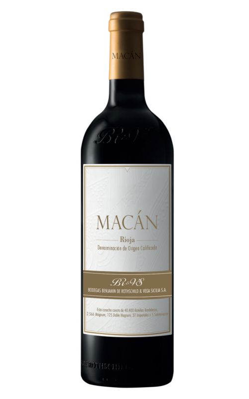 Benjamin de Rothschild & Vega Sicilia's Macán Macán Rioja wine exhibits an enchanting blend of the Rothschild's prestigious winemaking heritage and Vega Sicilia's profound understanding of the Rioja terroir. This Spanish red wine boasts an opulent palate of ripe red fruit, accented by subtle hints of spice and oak. Its ballet of flavours is complemented by an elegantly balanced acidity, while its silky tannins indicate soft refinement. Matured in French oak barrels, this Rioja wine imparts a long, lingering finish that reverberates with complexity. A true testament to the mastery of Rothschild & Vega Sicilia.