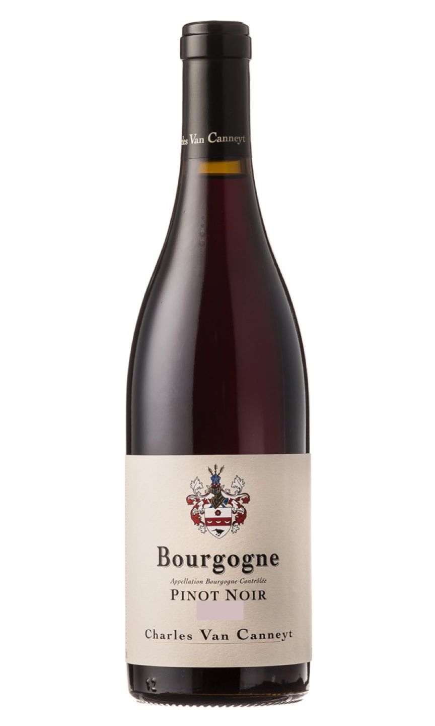 Charles Van Canneyt Bourgogne Pinot Noir is a splendid French wine, graced with intensity and depth. Displaying a vivid, ruby-red hue, it stimulates the senses with an invigorating bouquet of cherries, red currants and subtle spice. The palate is gifted with a robust richness, brimming with fresh fruits that cede to notes of earth and aromatic toast. This Pinot Noir unfolds gracefully with fine-grained tannins and an elegant acidity providing ample structure. Its balanced finish lingers pleasantly, rendering it perfect for pairing with tender red meats or ripe, soft cheeses. A fine selection for sophisticated wine enthusiasts.