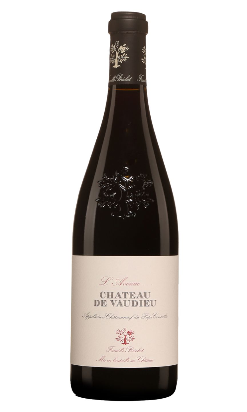 Château de Vaudieu L'Avenue Châteauneuf-du-Pape Rouge is a superb French wine epitomising the distinctive character of Rhône Valley's terroir. This wine reveals seductive layers of blackberry and cherry aromas, complemented by hints of spices and chocolate. Warrened in French oak barrels, it boasts an elegant tannin structure and a well-balanced, enduring finish. This highly coveted, full-bodied red exudes an opulent intensity, making it a splendid accompaniment to hearty meat and cheese dishes. L'Avenue, with its rich expression and sophisticated depth, is a supreme testament to the exceptional craftsmanship of Château de Vaudieu wines.
