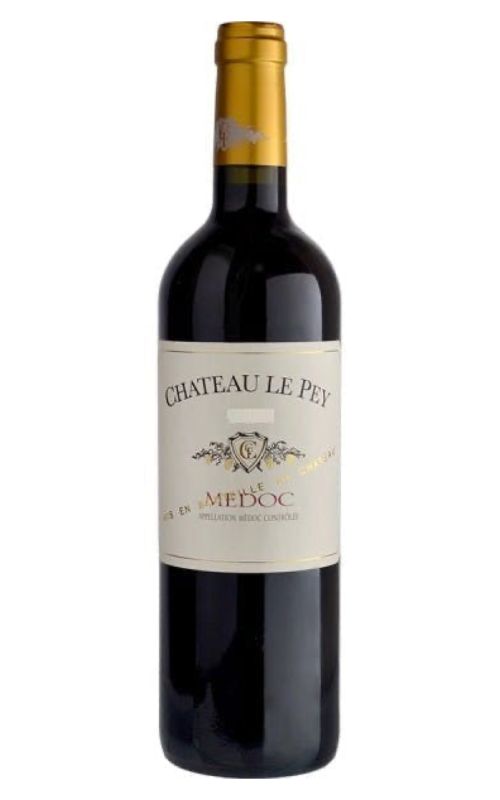 Chateau Le Pey Médoc Cru Bourgeois is a quintessentially French wine hailing from the prestigious Médoc region of Bordeaux. This robust Merlot red wine boasts a complex bouquet of ripe berries, oak, and spices, underpinned by earthy undertones. The wine's full-bodied palate, laden with velvety tannins and dark fruits, culminates in an enduring, spicy finish. Given its depth and maturity, it perfectly complements rich beef or lamb dishes. Indeed, Chateau Le Pey's sophisticated balance of traditional and modern winemaking techniques lends it an air of elegance, making it an ideal selection for discerning wine enthusiasts.