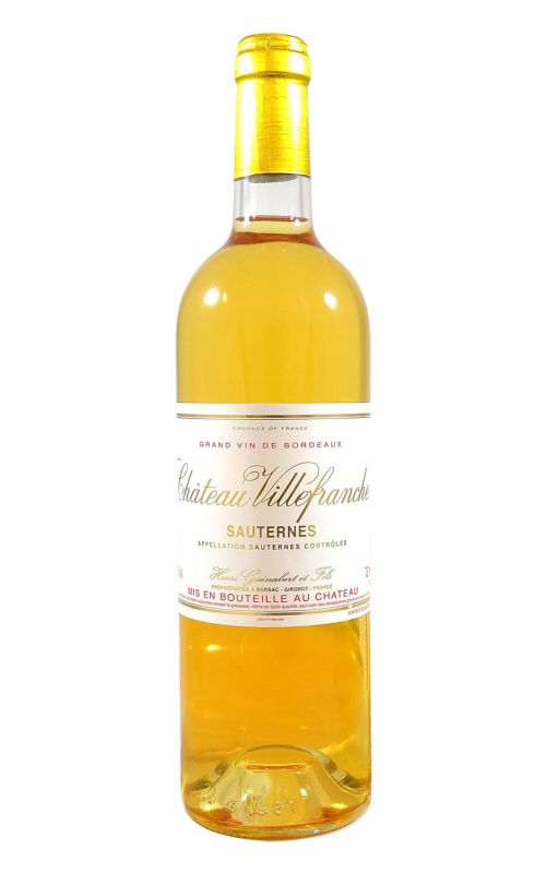 Château Villefranche Sauternes wine is an elegant fusion of luscious tropical fruit flavours and distinctive sweetness. Its golden brilliance is a treat for the eye as much as the palate. Provenance from the Sauternes region of Bordeaux offers authenticity to wine connoisseurs. Subtle hints of mango, pear, and peach smoothly integrate with traces of honey and saffron notes, further nuanced by a light, oak veneer. The wine's rich body and syrupy texture make it a delight on its own or with complementary desserts. Château Villefranche Sauternes is simply a complex symphony of tastes, crafted for the indulgence of the discerning drinker.