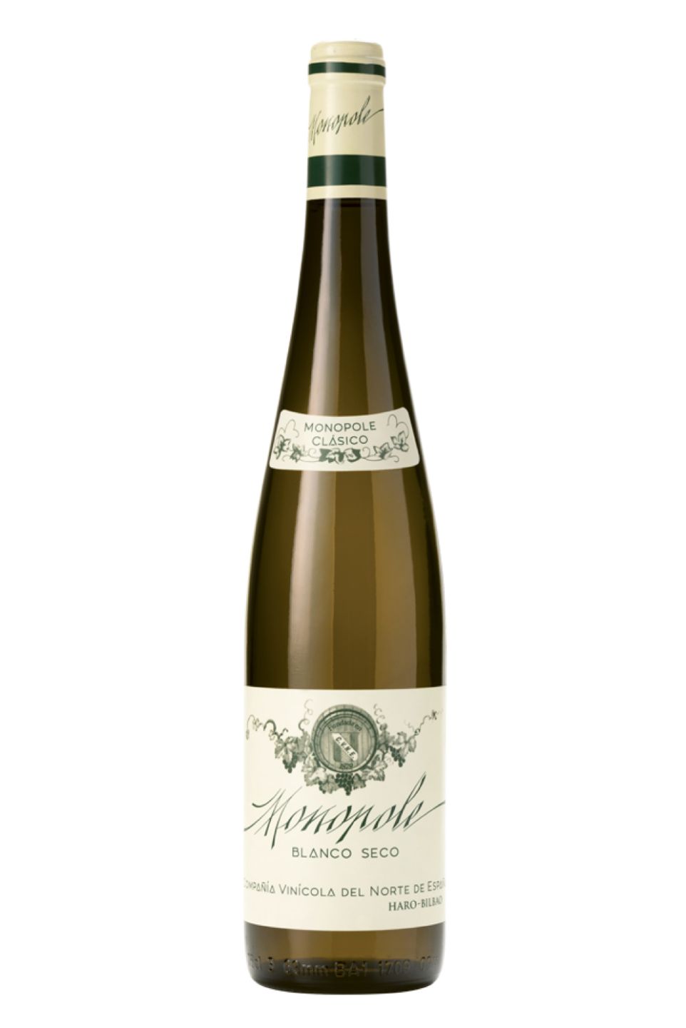 The C.V.N.E Monopole Clásico Blanco is an exquisite Spanish white wine from the renowned Rioja region. Its fine composition of Viura and Palomino grape varieties bring forth an elegant balance of fresh acidity and intense flavours. Shimmering with a straw-like hue, it greets the nose with an invigorating blend of citrus and nutty floral notes. On the palate, it presents a delectable melange of apple, pear and toasted almond nuances, finishing with a long, warm vanilla undertone. This wine is excellent for sipping alone or paired with rich fish dishes. A blissful expression of Spanish winemaking tradition.