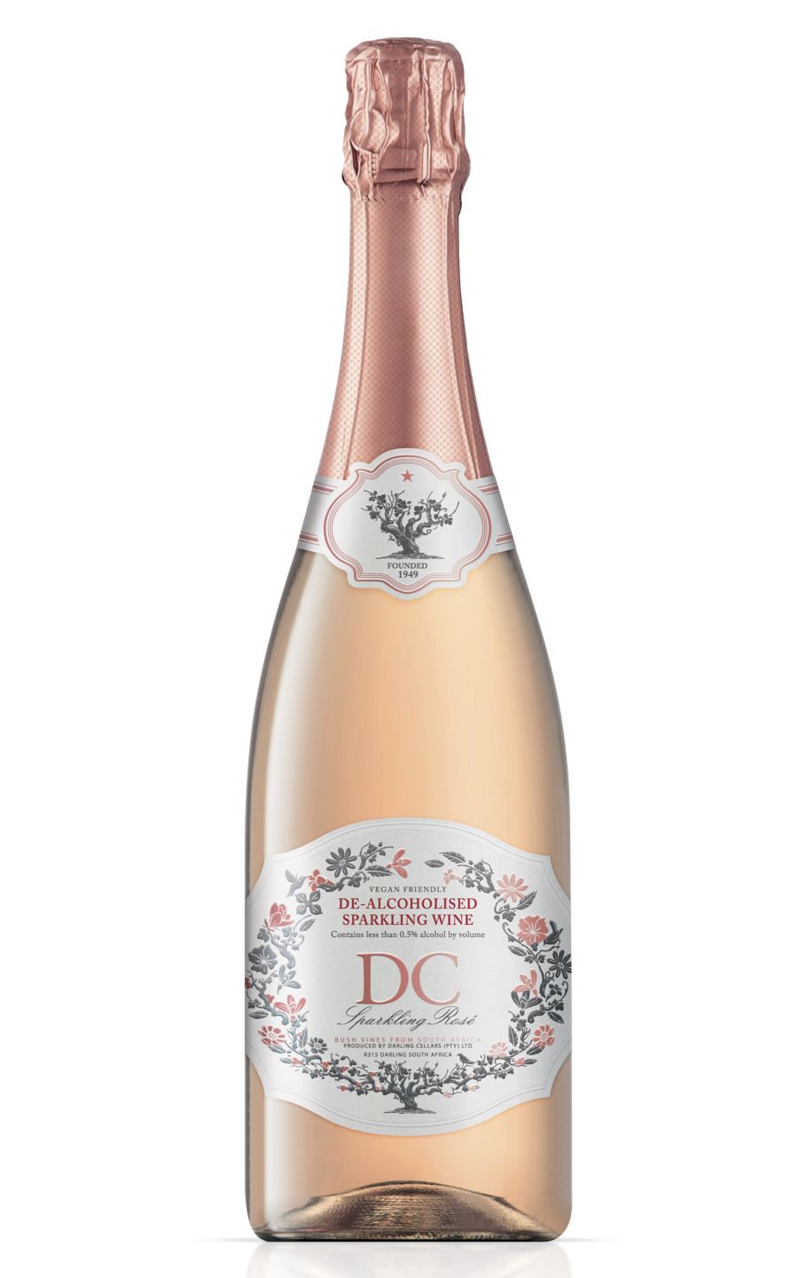 Darling Cellars De-Alcoholised Sparkling Rosé is a delightful non-alcoholic wine. Crafted in the Western Cape of South Africa, it presents the fragrant bouquet of luscious strawberries and ripe raspberries, enveloped in floral undertones. The palate is pleasingly fresh, offering subtle sweetness offset by a zesty acidity. This bubbly boasts a captivating pink hue, adding to its charm. It's a perfect celebratory drink for those abstaining from alcohol, or as a refreshing accompaniment to light meals. Take a sip of this bubbly beauty and experience pure indulgence without the guilt. Suitable for vegetarian and vegan wine lovers.