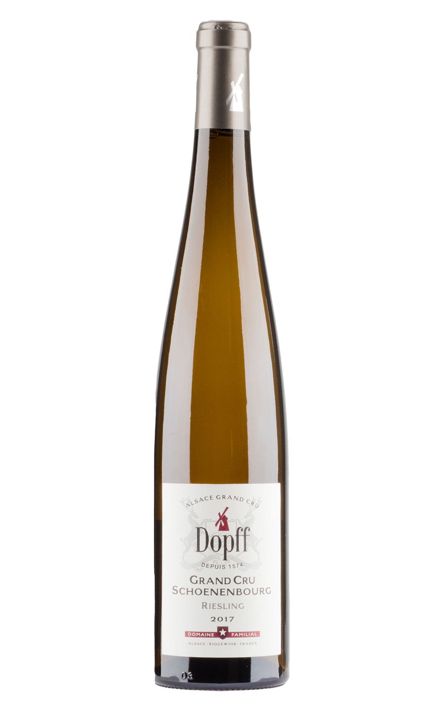 Dopff Au Moulin Schoenenbourg Grand Cru Riesling is an exquisite Alsatian wine crafted with refined complexity. This golden-hued decadence wafts intoxicating fragrances of peach, apricot, and charming jasmine undertones. On the palate, it reveals concentrated notes of ripe citrus and honey, enhanced by a spectacular mineral streak resulting from the Schoenenbourg’s unique terroir. Its acidity is beautifully balanced, promising a fresh yet powerful taste that gracefully unfolds in a lingering finish. Simply put, this Riesling is a splendid illustration of harmony and intensity, fit for wine connoisseurs pursuing authentic depth and vibrancy in the Alsatian style.