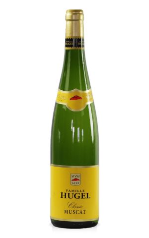 Famille Hugel Classic Muscat emanates a charm epitomising the uniqueness of the Alsace region in France. It presents an aromatic intensity of exotic fruits, fresh flowers and subtle spices, graciously paired with a lively and crisp palate. This vivacious wine captivates with its delicate sweetness and well-composed balance, leading to a pleasingly dry and refined finish. Offered in a gleaming golden hue, Hugel's Muscat delivers an elegant and sophisticated experience to the discerning palate. Ideal for pairing with Asian cuisine or aperitifs, it effortlessly amplifies the beauty of any dining affair.