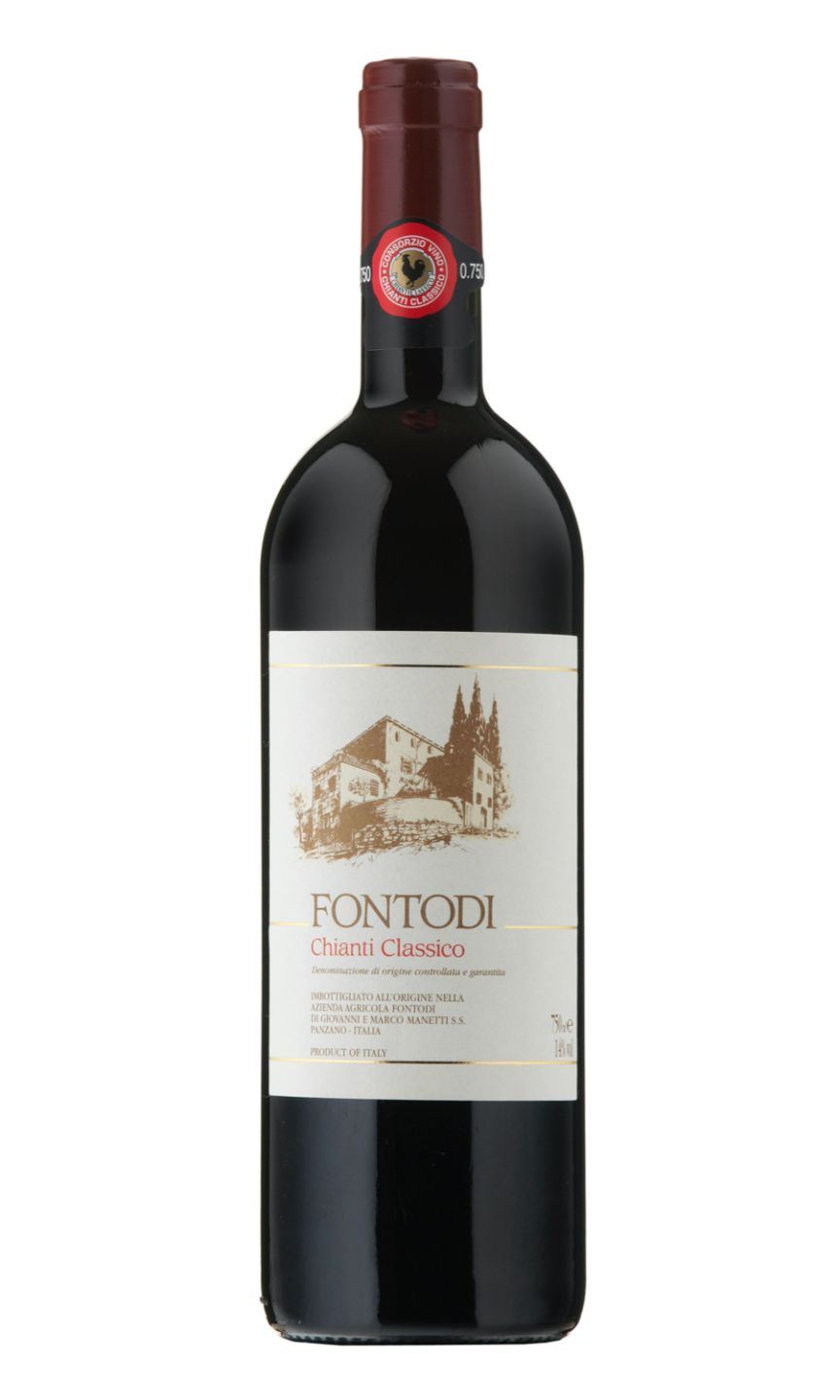 Fontodi Chianti Classico is a marvellous Italian red wine hailing from the undulating hills of Tuscany. This signature wine is well-loved for its robust, bright cherry flavours paired with lavish notes of sweet spice and earthy undertones. Matured in French oak barrels, it typically showcases ripe extract-driven fruit, which enhances its bold, full-bodied palate. The balance of firm tannins and good acidity offers a long, complex finish. It's a sophisticated companion to any meal, particularly succulent meats or rich, savoury sauces. Each vintage of Fontodi Chianti Classico wine is a testament to the winemaker's passion for authenticity and quality.