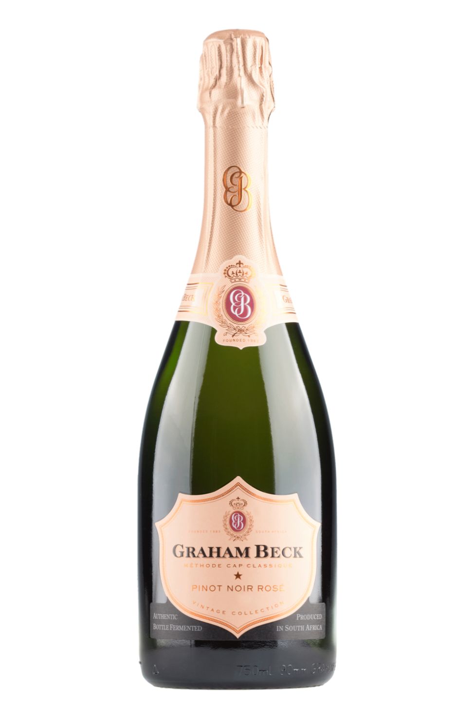 Graham Beck Pinot Noir Rosé is an exquisite South African wine showcasing remarkable refinement and complexity. Carefully crafted in the Franschhoek Valley, it possesses a rich salmon hue, teasing the senses with invigorating aromas of cranberries, raspberries, and a subtle hint of rose petals. On the palate, the wine impresses with a harmonious blend of red berry fruits, succulent watermelon, and hint of toasted bread complexity, all gracefully carried on a spine of fresh acidity. An effortless balance between sweetness and acidity makes this Rosé absolutely perfect for any occasion. A testament to South African viticulture's excellence.