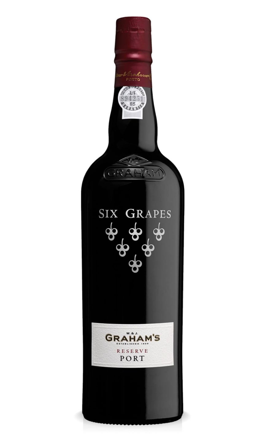 Graham's Six Grapes is a rich, luscious Portuguese wine of superior quality. Crafted from the finest grapes from five Douro Valley vineyards, its strong structure and deep purple hue are captivating. A bouquet of ripe plums and cherries greets the nose, followed by complex flavours of chocolate and dark fruits on the palate. Its finish is long, velvety, and satisfying. Graham's Six Grapes claims fame as port wine of choice aboard the 19th century British clipper ships. Multi-layered, full-bodied, and indulgent, it is a delightful companion for cheese courses, dark chocolates, or refined conversations.