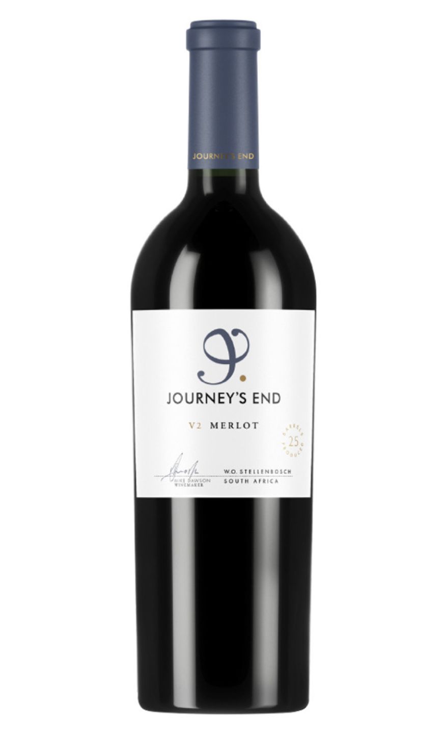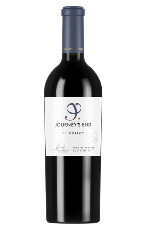 Journey's End V2 Merlot is a captivating wine produced at South African vineyards sheltered by the Hottentots Holland Mountain Range. This Merlot invites you with vibrant aromas of rich dark fruits, plums and full-bodied flavours of chocolate and soft spices. Matured in French oak barrels, it creates an extra layer of complexity. With perfect balance between acidity and ripe tannins, this wine is elegantly smooth and velvety. The finish is satisfyingly long, with lingering, savoury notes. Simultaneously rich and robust, Journey’s End V2 Merlot is an excellent companion to sophisticated meals or enjoyed alone for a relaxing evening.
