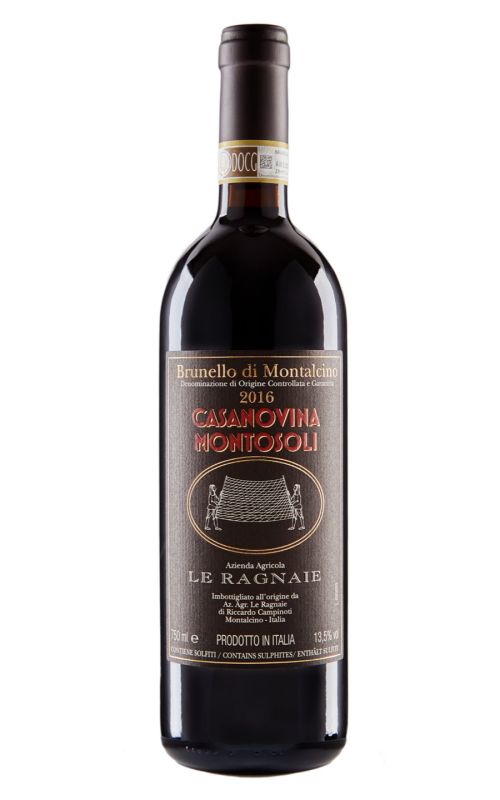 Le Ragnaie Brunello di Montalcino Casanovina Montosoli wine hails from Tuscany's vineyards, this red wine offers a beautiful balance of aromatic complexity, seductive tannins, and remarkable freshness. It unfolds layers of earthy nuances, black cherries, and plums; it’s rich, yet elegant. With considerable ageing potential, flavours of spice and truffle mellow over the time. The wine shines brightly, embodying Tuscan winemaking finesse. The finish is persistently pleasurable, proving its excellent vintage. This Brunello di Montalcino is an epitome of finely grained luxury, enhancing any dining experience with its elegant structure and intriguing complexity.
