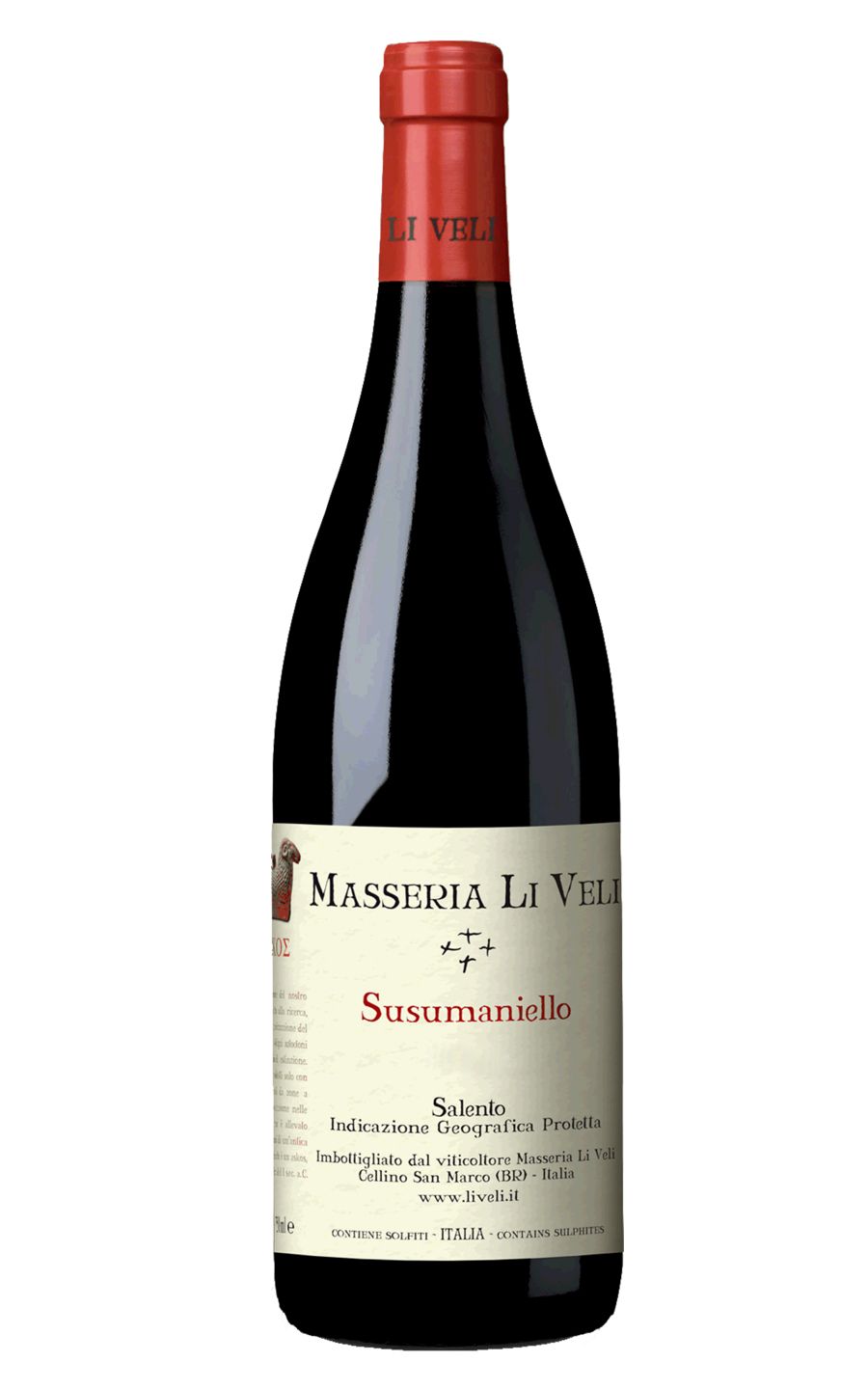 Li Veli Askos Susumanielo Salento IGT is an elegant, distinctive wine hailing from the southern Italian region of Salento. Its star is the indigenous Susumaniello grape, a rare variety that lends it an intense ruby-red hue. On the nose, expect a captivating dance of ripe red fruits, sweet spices, and delicate floral notes. The palate isn't overshadowed, boasting a harmonious balance of tannins, acidity and alcohol. It matures in French oak barrels, which presents a subtle undertone of vanilla. This medium-bodied wine rounds off with a pleasantly persistent finish, making it a visually delightful and tantalisingly tasteful treat for the senses.