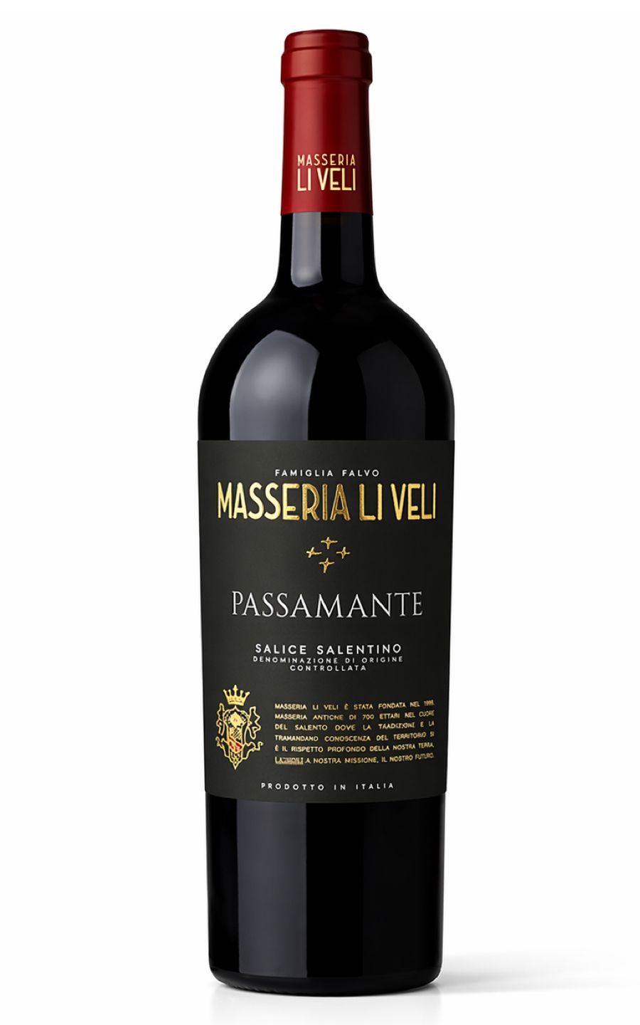 Li Veli Passamante Salice Salentino DOC wine hails from the Salice Salentino region in Italy. This elegant red wine possesses remarkable velvety smoothness, balanced by an exquisite full body. It is predominantly made from Negroamaro grapes, adding a unique bittersweet note. On the nose, it carries delightful scents of black fruit and spice, while the palate offers rich flavours of ripe red berries, plum and a hint of vanilla. Perfectly blended tannins and acidity create a lingering finish, making this wine a delightful choice for pairing with hearty meat dishes and mature cheeses.