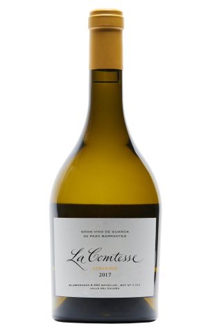 Pazo Barrantes La Comtesse Albariño wine is an exquisite Spanish wine emanating from the revered Rias Baixas region of Galicia. Boasting an opulent profile layered with refreshing citrus tones and delicate floral undertones, it exhibits a sophisticated complexity. The allure of ripe peach and soft vanilla adds depth to its aromatic character. On the palate, it stuns with its silken texture, radiant minerality, and an intoxicating finish. True to its Albariño nature, it presents a beautiful integration of acidity and roundness. This wine is a true gastronomic delight, an impeccable choice for those seeking a luxurious, matured white wine.