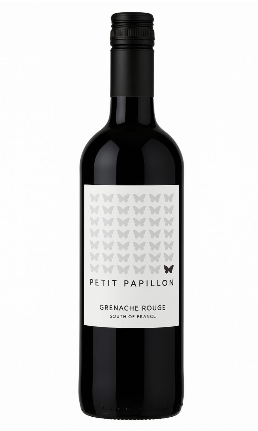 Petit Papillon Grenache Rouge IGP Pays d'Oc is a captivating French red wine, composed primarily of rich Grenache grapes sourced from the Pays d'Oc region. Flaunting a radiant ruby hue, it enchants the nose with a luscious bouquet of ripe red berries, delicate spices, and subtle notes of herbs. On elocution, it reveals a fruit-forward character with pronounced raspberry and black currant flavours, balanced by nuanced hints of white pepper. This wine's rounded tannins and impressive length leave an indelible impression, making it an excellent choice to be savoured alongside various hearty meals.